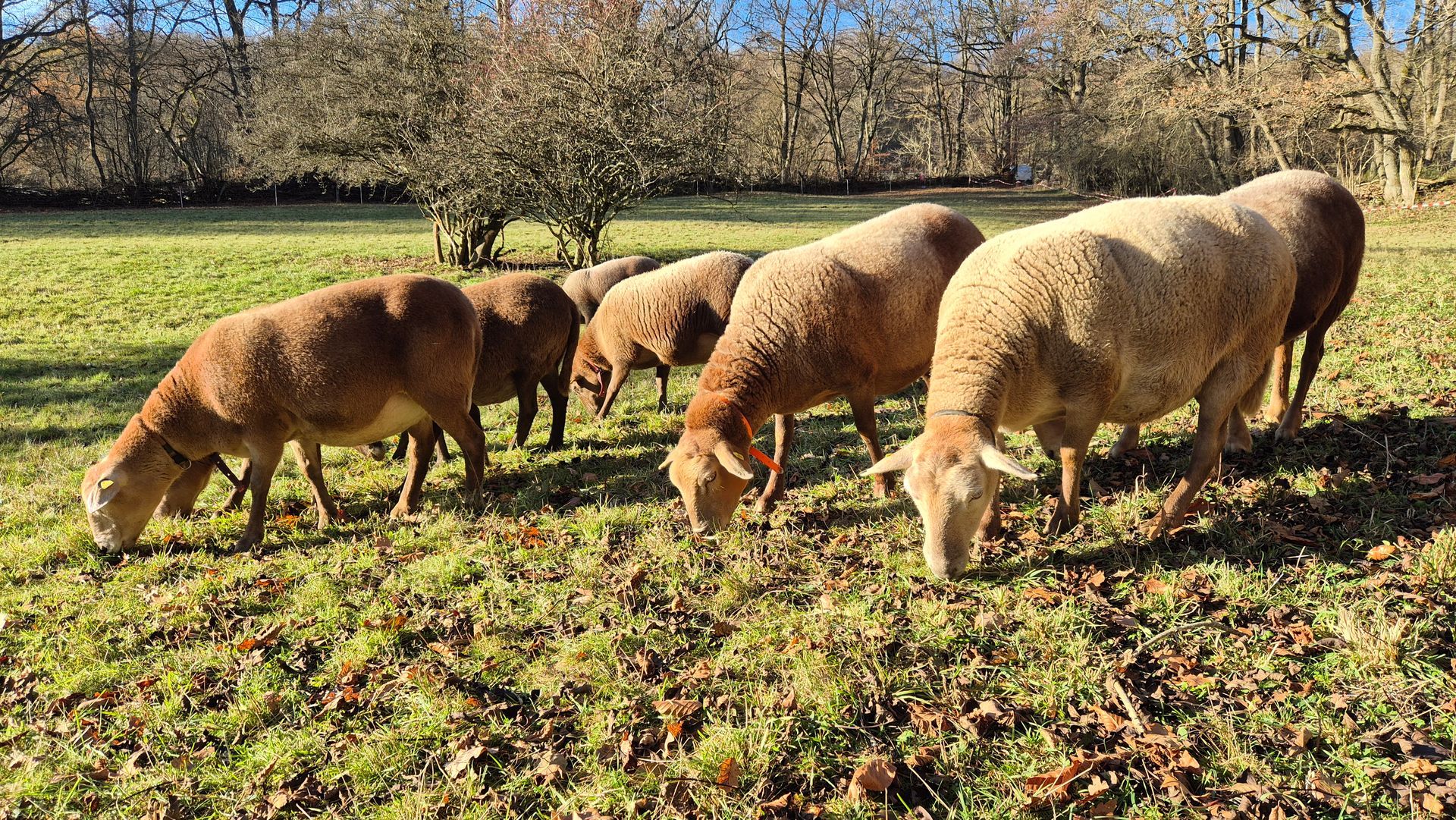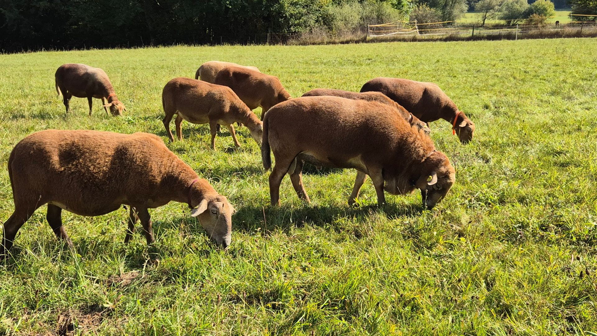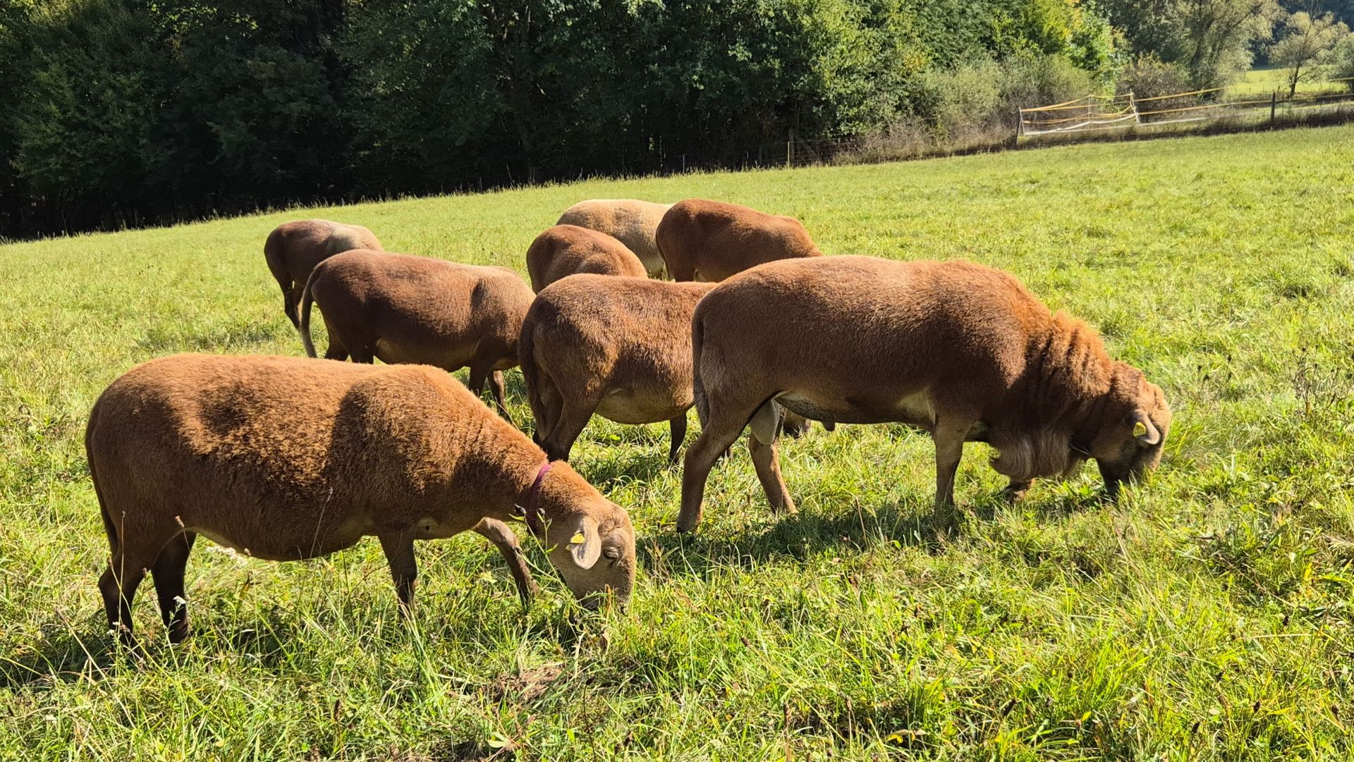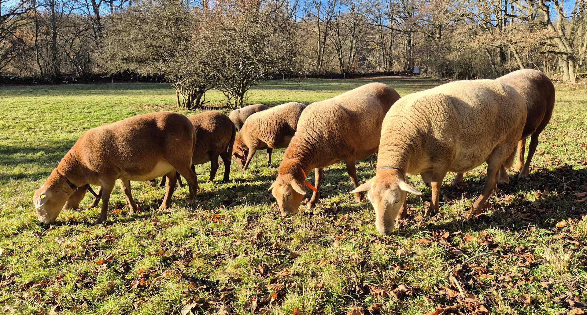 Wir kauften fünf Zuchtlämmer der Rasse Braunes Haarschaf von einem Herdbuchzüchter aus Nordrhein-Westfalen und im Februar 2023 noch den gekörten Zuchtbock Charlie Brown. Die Schafe haben sich bestens bei uns eingelebt. Sie sind seit September 2023 ins hessische Herdbuch aufgenommen und sehr gut bewertet worden.