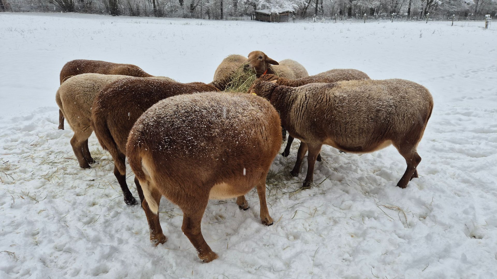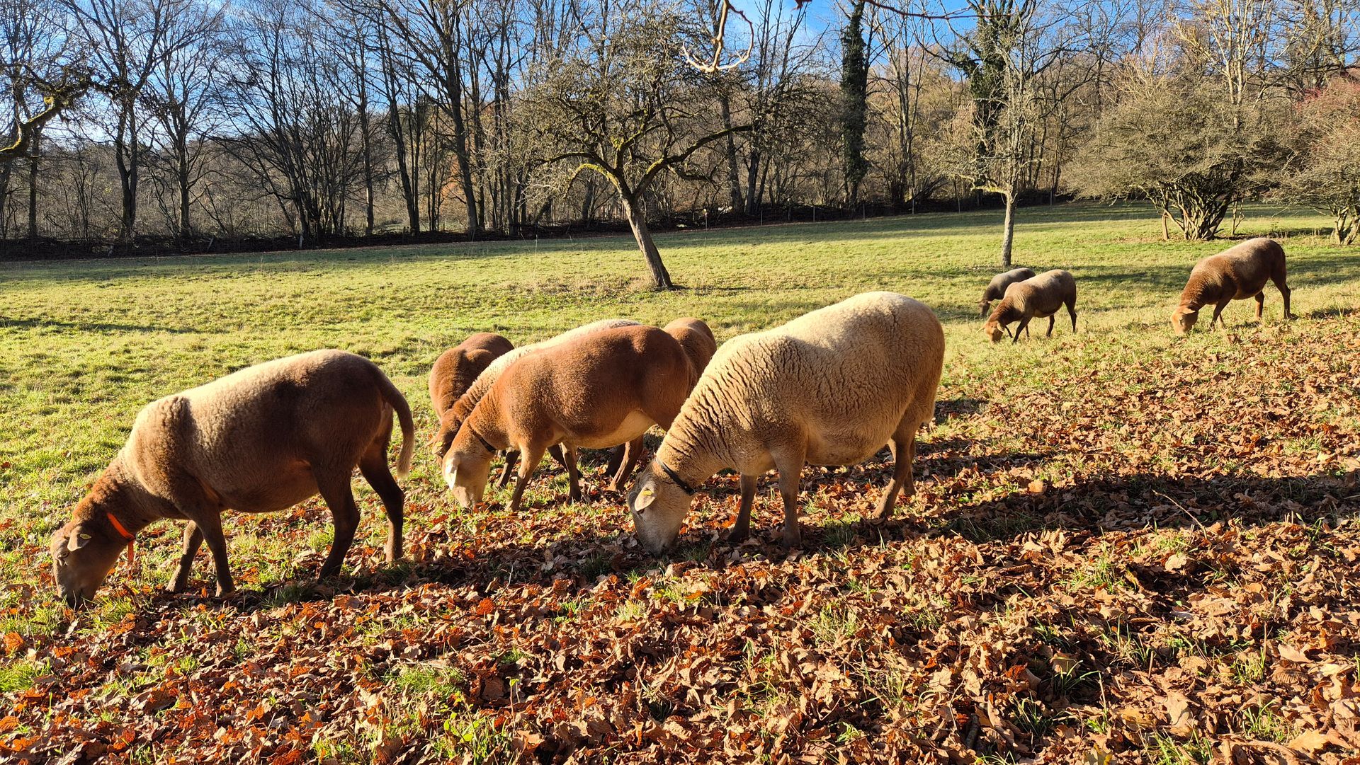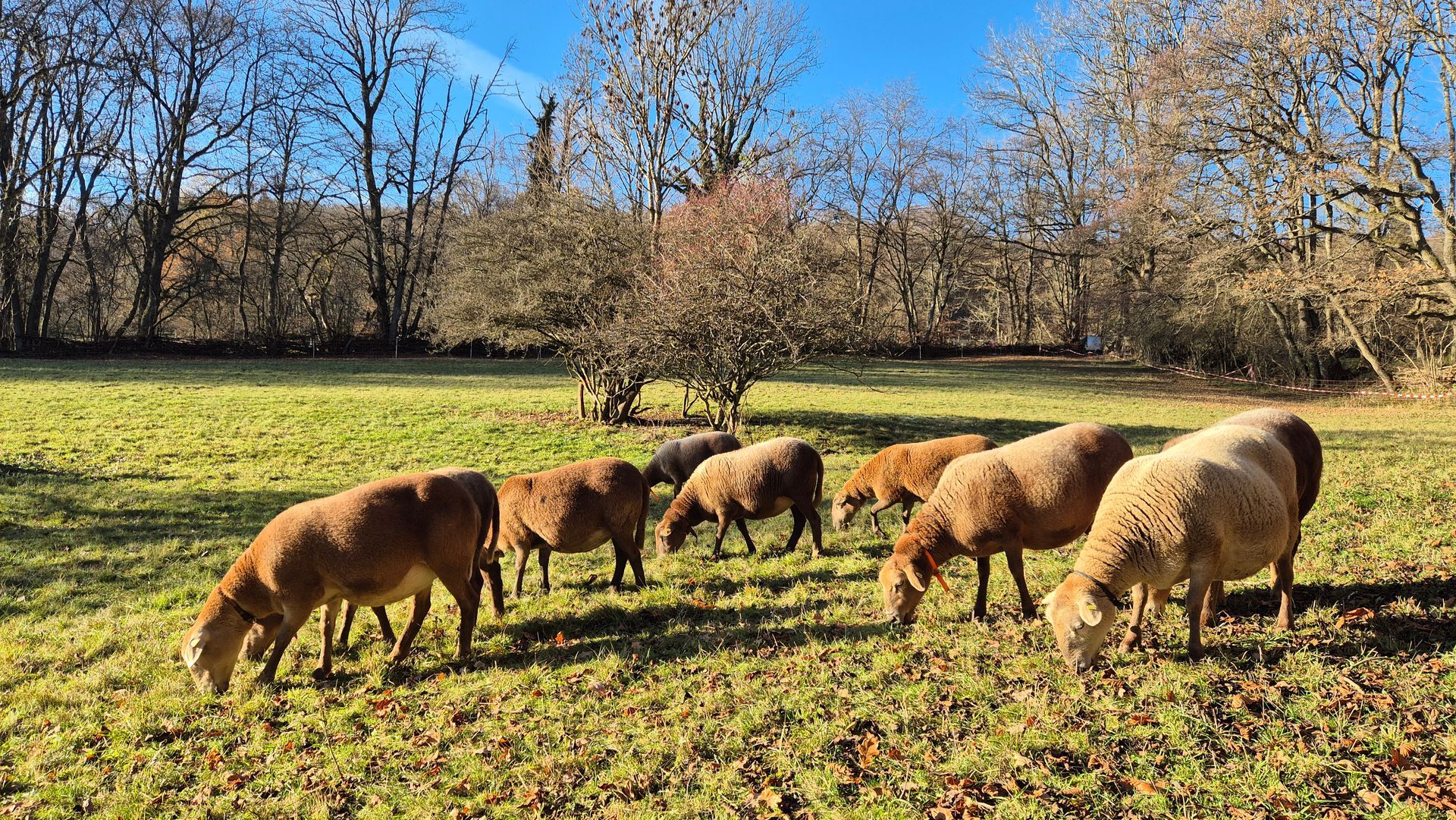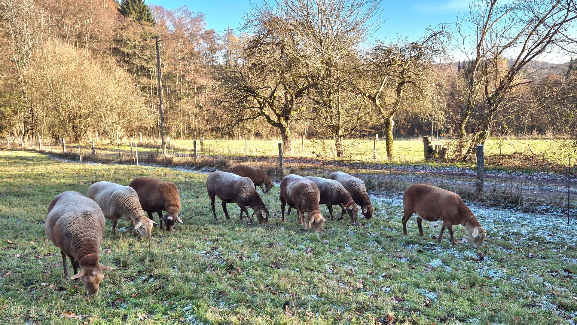 Wir kauften fünf Zuchtlämmer der Rasse Braunes Haarschaf von einem Herdbuchzüchter aus Nordrhein-Westfalen und im Februar 2023 noch den gekörten Zuchtbock Charlie Brown. Die Schafe haben sich bestens bei uns eingelebt. Sie sind seit September 2023 ins hessische Herdbuch aufgenommen und sehr gut bewertet worden.